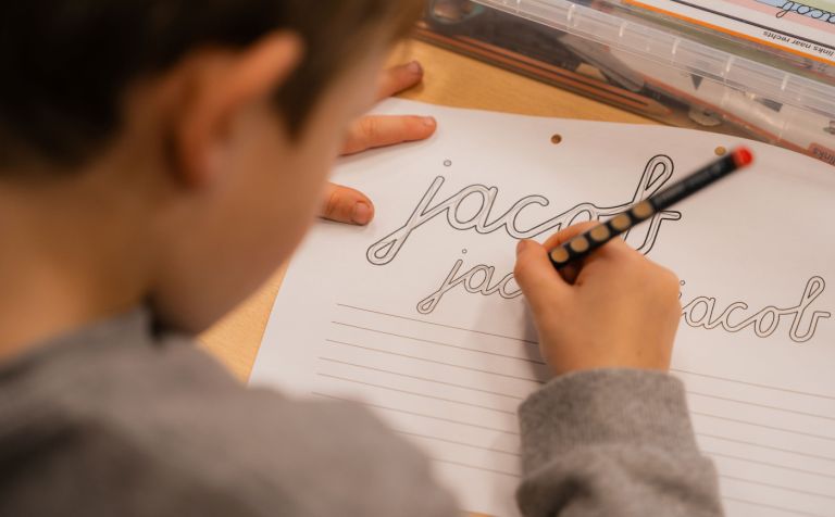 het leren schrijven van hoofdletters. Daarnaast maken we van het inoefenen van de maaltafels een
